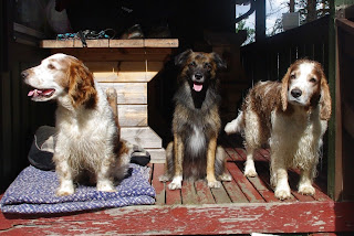 Mutta nyt toisaalta, meillä koulu alkoi heti yön yli retkellä. Koiriani tuli hoitamaan serkkuni, joka on ollut kanssamme lenkeillä joskus yhdessä, mutta siihenpä koirien ja serkkujen yhteinen historia jääkin. Ego oli keksinyt jälleen, että rappukäytävästä kuuluvat jännät äänet saa haukkua, lujaa. Huomenna siis testiin, mites pojat pärjäävät varsin tilavassa, olohuone-keittiö akselilla. Joskos jänniä ääniä ei tartteis haukahdella niin paljoa kun ei olla kyttäämässä ääniä eteisen oven takana. Muutenhan meillä on pojat olleet ihan hissukseen (yhtä hyvin pahasti kopistelevaa lehdenjakajaa lukuunottamatta, se pitää haukahdella), mutta nyt uusi hoitotäti oli taas painanut on-asentoon jonkun jännien asioiden haukkumisnapin.